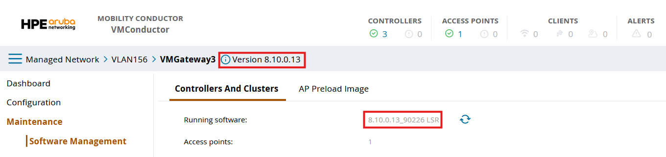 Sobald das Netzwerk bereit ist, prüfen Sie die Softwareversion des VMGateways. Navigieren Sie zu: