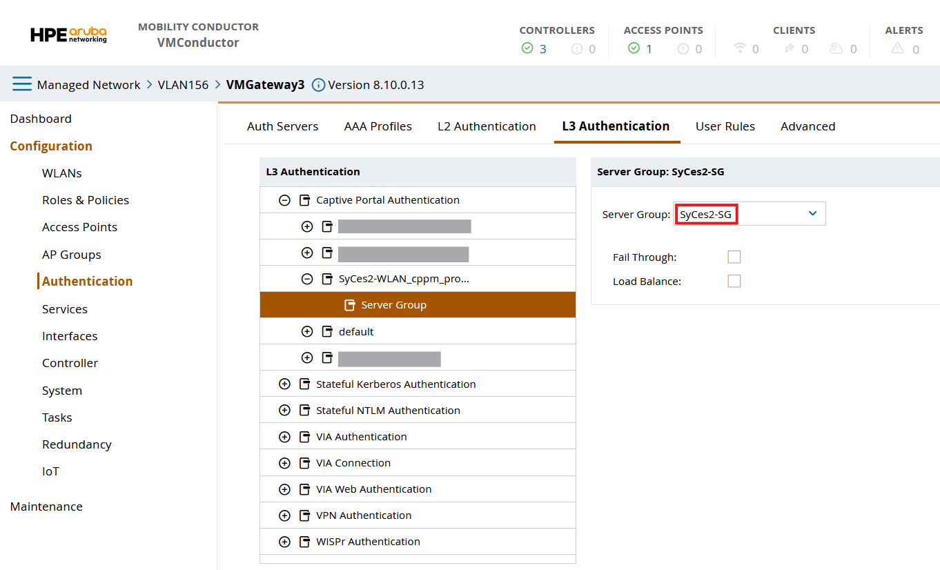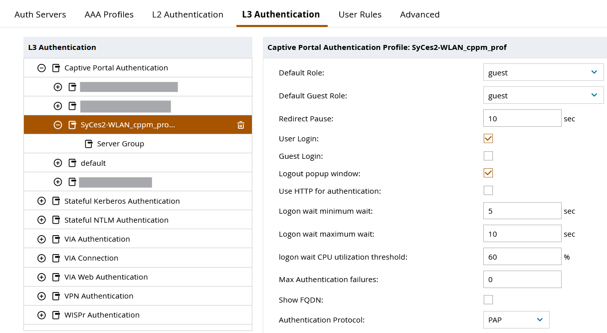 Authentication > L3 Authentication. - Öffnen Sie das Ihrem WLAN zugewiesene Captive Portal Authentication Profil.