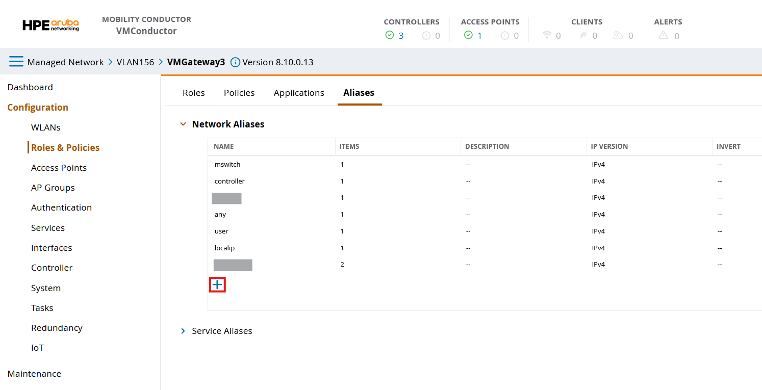 Roles & Policies > Aliases. - Klicken Sie auf das Symbol ➕, um einen neuen Netzwerkalias zu erstellen.