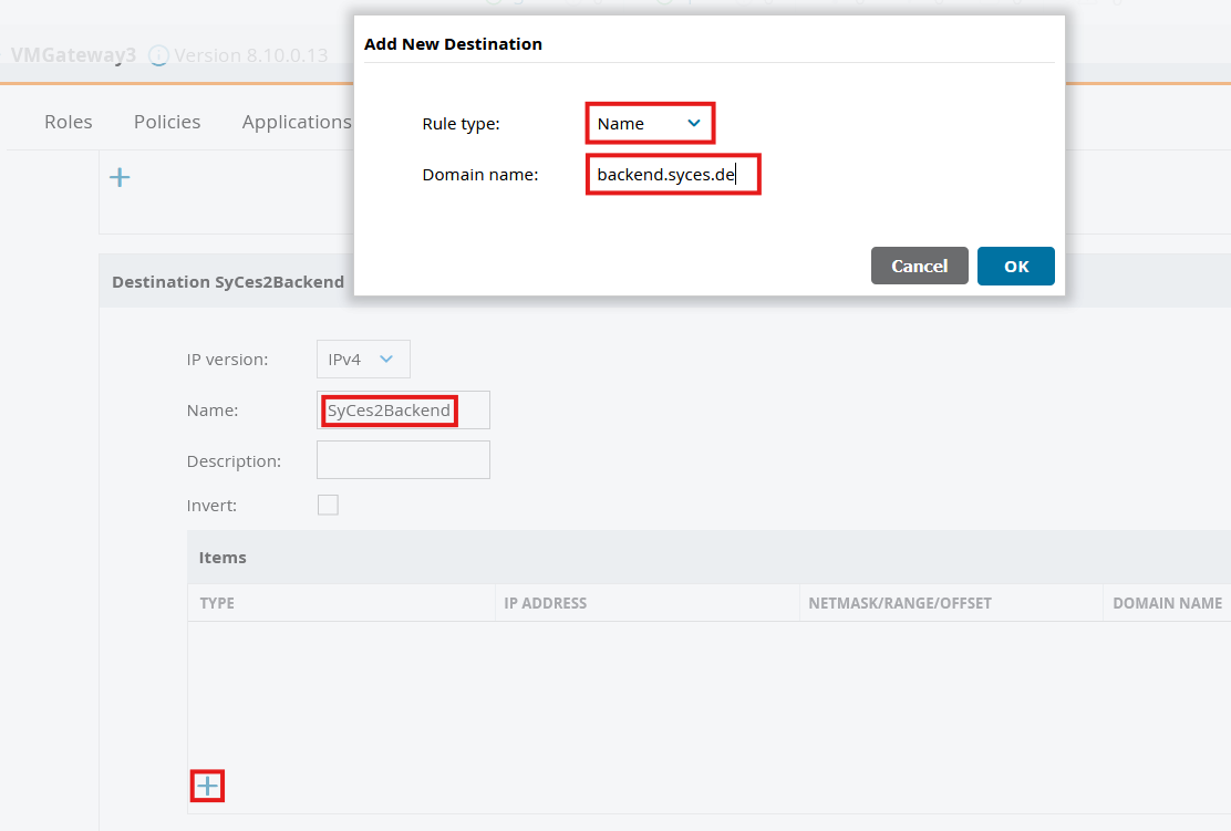 SyCes2Backend). - Klicken Sie im neu geöffneten Bereich auf das Symbol ➕, um ein Ziel (