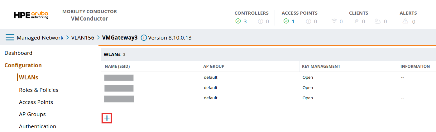Configuration > WLANs. - Klicken Sie auf ➕, um ein neues WLAN zu erstellen.