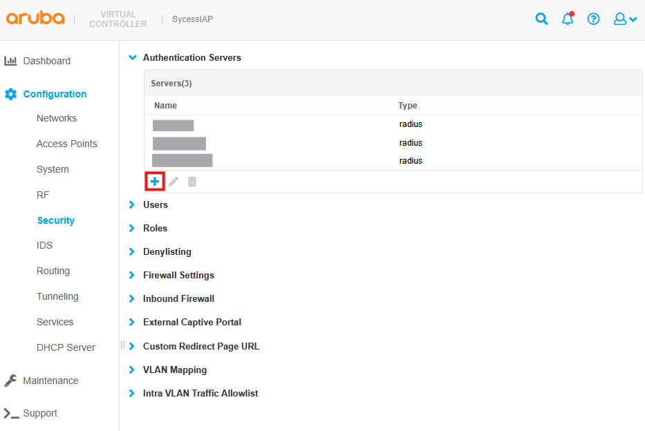 Configuration > Security. - Öffnen Sie die Liste der Authentication Servers.