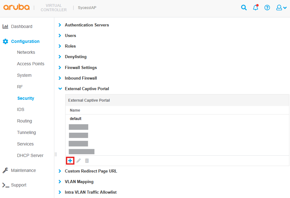 Configuration > Security - Öffnen Sie die Liste der Einträge für Externe Captive Portale.