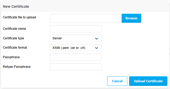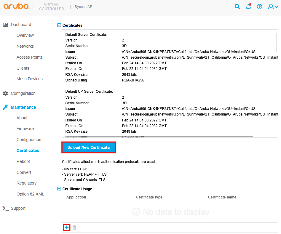 Maintenance > Certificates. - Klicken Sie auf Upload New Certificate.